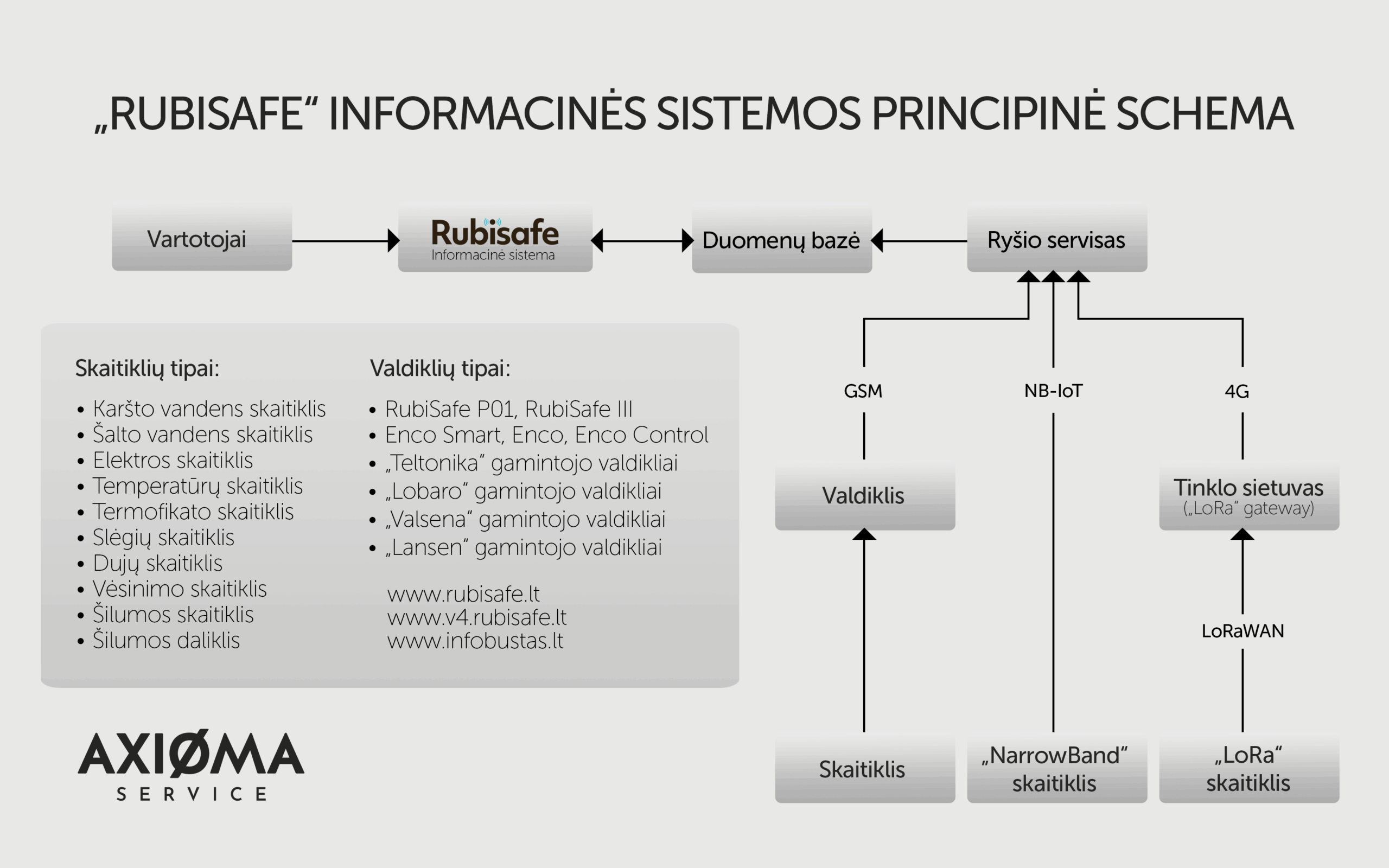 „Rubisafe“ – tai centralizuota informacinė sistema, skirta nuotoliniam karšto ir šalto vandens, elektros energijos ir kitų išteklių apskaitos duomenų surinkimui, apdorojimui ir analizei. Sistema leidžia automatizuotai nuskaityti duomenis iš įvairių skaitiklių, naudojant populiariausius ryšio kanalus: GSM, NB-IoT, 4G ir LoRaWAN.